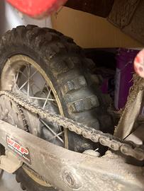 Aprilia etx 350 senza libretto e targa. Trasformata in cross con parafanghi e gomme tassellate. Manca l'impianto elettrico, quindi accensione solo a pedalina. Non dispongo dei ricambi. Vendo per liberare spazio con formula visto e piaciuto. Prezzo indicativo e trattabile solo di persona. Ritiro a carico dell'acquirente, non spedisco. Eventuale permuta con bici elettrica di mio gradimento, o pagamento in contanti.