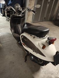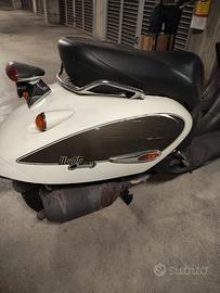 Aprilia Habana Mojito Custom - Edizione Limitata Vintage Chic Vendo bellissima Aprilia Habana Mojito Custom, scooter dal design retrò iconico e irresistibile, perfetto per chi cerca stile e personalità nelle due ruote urbane. Colore avorio perla con dettagli marroni e bianchi, look elegante e distintivo che attira sguardi ovunque. Caratteristiche Principali Design: Linee classiche custom con sella lunga in pelle nera, manubrio alto cromato, fari tondi vintage e logo Mojito Custom originale Condizioni: Esemplare vissuto con carattere - segni d'uso autentici su carene e pedana che ne aumentano il fascino (13.234 km al contachilometri) Dettagli: Cromature ancora ottime, scarico originale (con patina), strumentazione completa funzionante, pedana antiscivolo, bauletto incluso Perché Sceglierlo È più di uno scooter: è un statement su ruote. Compatto per la città (parcheggio facile), comodo per due persone, dal sound piacevole e consumi ridotti. Condizioni meccaniche: marciante ma fermo da circa 2 anni, necessità di revisione. Condizione estetica: molto buona con alcuni segni di usura e di cadute da fermo, valido fin da subito ma si presta ad un restauro semplice ed economico, per collezione o uso quotidiano. Ideale per appassionati di scooter custom anni '90-2000.