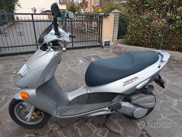 Vendo Leonardo Aprilia 150 originale per mancato utilizzo. Immatricolato nel 99, ottime condizioni estetiche, tenuto sempre in garage. Buone condizioni meccaniche, non si mette in moto per batteria scarica. Veicolo iscrivibile Asi per sconti su bollo e assicurazione, guidabile già con patente A2 da 18 anni con bassi costi di manutenzione con buona affidabilità. Insieme allo scooter vengono ceduti due caschi ed una copertura.