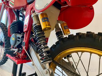 Moto totalmente ricostruita a nuovo pronta corse con ammortizzatori Ohlins, pedane grandi e una infinità di accorgimenti.