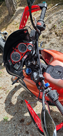 La moto monta gomme nuove cambiati a Aprilia 2025, revisione scaduta a luglio 2025 la moto e ferma ma lo accendo una volta a settimana, lavori fatti dall ex proprietario guarnizione testata per classico difetto che perdeva aqua , poi fatta cambio olio anno scorso dopo lo fermata per inverno, cambiato motorino avviamento statore più centralina, piccole modifiche di estetica, la moto funziona perfettamente e da vedere per credere, per informazioni mandate messaggio.