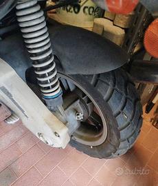 Aprilia Rally 50 (versione raffreddata ad aria). TUTTO ORIGINALE Lo scooter è sempre stato tenuto in garage coperto. È totalmente originale, mai elaborato e mai incidentato. Dettagli del veicolo: Chilometri: 23.594 km originali. Stato: Esteticamente in ottime condizioni, plastiche e sella ben conservate. Meccanica: Motore Minarelli orizzontale originale. Fermo in garage dal 2015 (necessita di normale tagliando post-sosta e batteria nuova). Documenti: In regola con targa a 6 cifre e libretto nuovo (formato A4). Condizioni di vendita: Passaggio di proprietà: Obbligatorio presso agenzia pratiche auto (ex Art. 2688 C.C.). Spese a carico dell'acquirente. Ritiro: Lo scooter ha la revisione scaduta e viene venduto senza targa (personale), pertanto deve essere ritirato con furgone o carrello. Prezzo: € 850 (poco trattabili)
