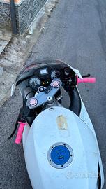 Vendesi Aprilia RS 125 1997 per inutilizzo La moto è stata restaurata completamente ed è ancora da finire il rodaggio monta: Blocco e cambio completamente revisionati, cambiato ogni cuscinetto e paraolio con gli sport production o cuscinetti di pari qualità, pulito e controllato il cambio Cilindro e testa lavorati Pistone nuovo Albero revisionato Pacco lamellare e sede lavorati Vhsb 34 lavorato Valvola rave Accensione ad anticipo variabile PVL con staccamassa (l'impianto elettrico è funzionante, è tutto sotto batteria e c'è un mantenitore di carica che cedo assieme alla moto) Jolly moto Tubi acqua in silicone Tutti lavori fatti da preparatore esperto Sensore giri koso Forcelle revisionate in officina Gommata nuova Pirelli Diablo Catena corona e pignone nuovi Frecce nuove Cupolino nuovo Pompa anteriore Adelin Tubi in treccia accostato anteriori e posteriori Cuscinetti ruota nuovi Gli unici lavori rimasti per riportarla nel pieno del suo splendore sono una verniciata alle carene (con graffi e vernice rovinata ma TUTTI gli attacchi sani) ed al cerchio anteriore ed una revisione al mono posteriore. Vendo per inutilizzo a malincuore, non ho nessuna fretta di venderla, la moto è sempre stata tenuta in garage e ci sta risiedendo attualmente come si vede dalle foto in Carter sono ancora perfetti da quando il blocco è stato rifatto, ci si può mangiare sopra. Cedo anche testa italkit ed alcuni ricambi originali