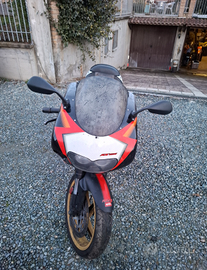 Vendo Aprilia rs 125 del 2003 funzionante con documenti, con revisione, guidabile a 16 anni avendo 10,50kw. Vendo a causa cambio tipologia di moto. Nel prezzo cedo le 4 frecce nuove da montare, carene laterali, codino, parafango anteriore e altre carene. Il carburatore, le forcelle sono state revisionate, motorino d'avviamento nuovo, cilindro e pistone retificati con attuali pochi km e filtro a cono. Per ulteriori informazioni contattatemi.