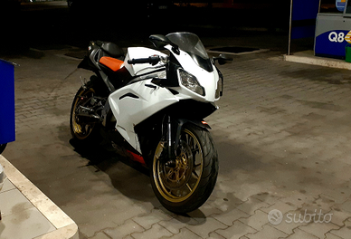 La moto monta carburatore dell'orto 34 vhsb e scarico arrow challenge 2 fori (di un extrema 125).