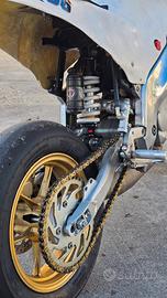 RS 125 trasformata in pit bike, non minigp come le altre. Manubrio alto con ammortizzatore di sterzo, forcella preparata da gubellini, cerchi da 12 pollici, 30 cv, rapporti corti, espansione da corsa, divertentissima e con un allungo che i 4t cinesi si sognano e a differenza dei cinesi non si smonta e non si spacca da solo semplicemente usandola, anzi. estetica grezza, no miscelatore, no documenti, avviamento solo a spinta ma parte subito, valvola RAVE revisionata, basta mettere benza e sei in pista. vendo per passaggio a motard. consegna gratis tra emilia e lombardia.