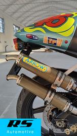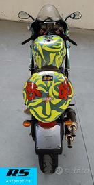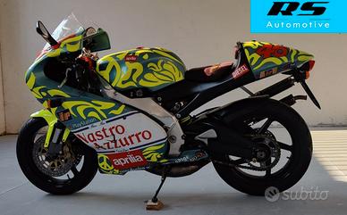Proponiamo una RS 250 mk1 immatricolata nel 1998 con colorazione e plastiche replica Valentino Rossi Mugello 1999 , che ritorna su strada dopo essere rimasta per diversi anni ferma in un salotto. si tratta di una special , questa colorazione non è mai stata commercializzata !
