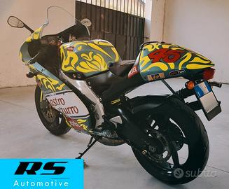 Proponiamo una RS 250 mk1 immatricolata nel 1998 con colorazione e plastiche replica Valentino Rossi Mugello 1999 , che ritorna su strada dopo essere rimasta per diversi anni ferma in un salotto. si tratta di una special , questa colorazione non è mai stata commercializzata !
