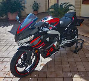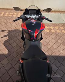 Vendo Aprilia RS 457 (Livrea: Racing Stripes) per passaggio a cilindrata superiore. La moto è in ottime condizioni, tenuta sempre su cavalletto posteriore e coperta. Categoria A2, scelta ideale per chi cerca il miglior rapporto peso potenza per questa categoria. Chilometraggio: 9300 km circa (I km potrebbero leggermente variare poiché la moto è attualmente in uso). Mai caduta e mai stata in pista. Completamente originale. Tagliandi regolarmente eseguiti presso officina autorizzata Aprilia. Garanzia in scadenza a giugno. Gomme (Pirelli rosso III) in ottimo stato.