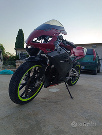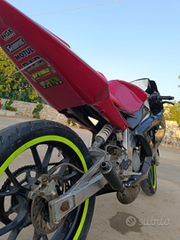 la moto era stata ripristinata di motore tranne per alcuni pezzi,presenta un cilindro top 80,24mikuni, marmitta curva bassa,e altre modifiche.