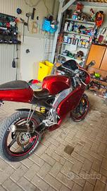 PREZZO TRATTABILE Moto completamente come nuova, usata pochissimo. Tenuta benissimo e in perfette condizioni, scarico completamente nuovo, vernice completamente nuova Red candy Black cherry, carbon fiber su alcune carenature. Top viola 70cc motore montato poco fa .carburatore dellorto 21,frecce nuove con animazione, catena nuova, corona e pignone nuovo, espansione arrow, terminale carbon fiber, lucidato. Km23700, col motore nuovo solo circa 90km. Moto d'epoca come nuova