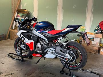 Vendo Aprilia Rs 660 colorazione Tribute comprata da me nuova a Febbraio 2024 in concessionaria ufficiale Aprilia con estensione di garanzia fino a febbraio 2028. La moto è assolutamente pari al nuovo e priva di qualsiasi difetto; non ha mai preso una goccia di acqua, pulita solo ed esclusivamente a secco con la massima cura e con prodotti specialistici, sempre riposta in garage sotto apposito telo. Ovviamente non ha mai visto la pista neanche da lontano; sempre trattata con la massima attenzione. Tagliandi ufficiali in casa madre a 1000km (aprile 2024) e 6000km (marzo 2025); la moto ha attualmente 7.500km. Pneumatici Pirelli Rosso 4 all'80%. Sulla moto sono presenti i seguenti accessori: Aprilia Mia per la connessione della moto allo smartphone, Cupolino maggiorato Puig, cover chiave serbatoio originale rossa, sella originale rossa, codino monoposto originale; ovviamente cedo anche tutti i pezzi originali sostituiti appena presa (quindi Cupolino originale, cover clave nera serbatoio, sella pilota nera originale e sella passeggero originale). NON SONO INTERESSATO A SCAMBI CON NULLA E AD OFFERTE AL RIBASSO, per qualsiasi informazione o ulteriori foto non esitate a contattarmi sulla chat di subito (rispondo immediatamente, Lasciate un vostro numero e sarete subito ricontattati).