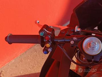 monta carene in vetroresina ,protezioni motore , tubi freno diretti, pedane regolabili, emulatore abs , semi manubri spider , piastra superiore rivata dal pieno , telaietto anteriore con presa aria racing , scarico completo con dbkiller , tappo serbatoio racing , tolto blocchetto chieve con pulsante jet prime , centralina rimappata , filro aria ,protezzione cruscotto melotti kit trasmissione con catena did erv7 nuova , pulsantiera sx racing , la moto fa 90 cv alla ruota .