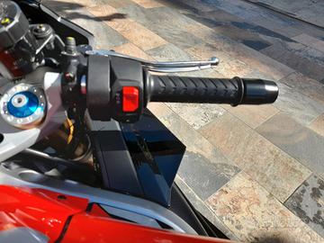 Full Factory StyleLo spirito competitivo di Aprilia RS 660 Factory si rivela nei contrasti cromatici della sella bicolore e delle grafiche Factory: su strada il nero la fa da padrone, avvolgendo le fiancate, ma è quando la piega si fa seria che emerge il rosso, imponendosi sulla visuale superiore e svelando la scritta Aprilia impressa sull'ampia ala anteriore. La carenatura, scolpita da linee dinamiche e moderne, è perfezionata da soluzioni aerodinamiche derivate dall'esperienza MotoGP, con winglets che migliorano la stabilità a velocità elevate. Ogni elemento è progettato per coniugare design e funzionalità, incarnando l'autentica essenza del racing.