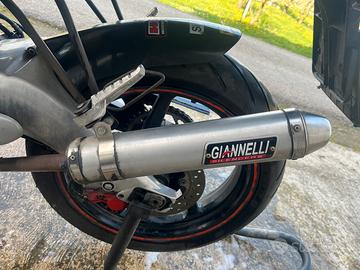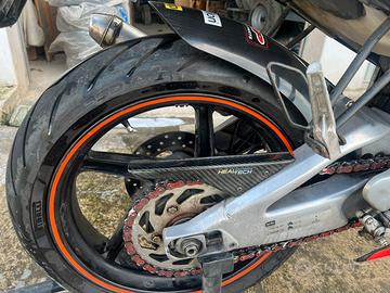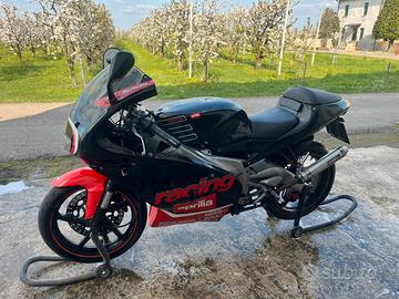 Vendo Aprilia rs 125 2 tempi 2001 con cilindro 160 polini carburatore 34 valvola piatta e Airbox maggiorato,moto in buone condizioni completamente funzionante carene tetsuya harada originali ma segnate in buone condizioni per l'età che ha,moto ferma da due anni ma messa in moto regolarmente e funzionante tuttora il blocco avrà percorso circa 5000 km da quando è stato fatto, a corredo anche un altro blocco motore rotax semicompleto con cilindro grippato ,possibile iscrizione fmi,depotenziata a libretto guidabile a 16 anni, a corredo kit di cavalletti su misura più altri pezzi vari da verificare rinvio contachilometri in quanto non segna velocità