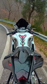 Aprilia rs4 125 4t anno 2014 23000 km, appena tagliandata con olio motul specifico, filtro dell'olio, filtro dell'aria racing BMC specifico, gomme montate da poco "diablo rosso sport" pagate 200 euro, sono le più sportive. Pasticche anteriori brembo rosso sinterizzate 50 euro, posteriori malossi sinterizzate 30 euro, trasmissione nuova qualità top did 95 euro, cupolino fumè scuro 30 euro, specchietti simil rizoma con scritta Aprilia 50 euro, revisione completa forcelle con olio e parapolvere nuovi 150 euro, cambio elettronico Aprilia originale 150 euro + centralina malossi force master 2 per incrementare le performance e la carburazione 450 euro, monoposto aftermarket 60 euro, cavo frizione nuovo, fluido freni nuovo motul dot 4 anteriore e posteriore. La moto è in ottime condizioni e pronta all'uso, tagliandi fatti sempre regolarmente ogni 5000 km con olio sintetico, tutto in ordine, revisione fatta. Disponibile per visionare la moto e provarla. Cedo insieme alla moto tutti i ricambi originali, vendo per passaggio a rs 457.