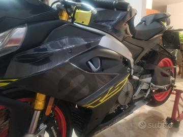 Aprilia RS660 modello 2025, nuovo modello, 105 cv, 70 nm di coppia, acquistata nuova in luglio 2025 presso concessionario ufficiale Aprilia. Unico proprietario, in garanzia, 3700 km reali, rodata in maniera maniacale, primo tagliando certificato ufficiale, perfetta, nessun graffio o difetto, pari al nuovo, usata per uscite domenicali e tenuta sempre interno casa su cavalletto posteriore, mai pista. gomme al 70% Full stock. Attualmente ferma per sospensione assicurazione invernale. Cedo con cupolino wrs dal valore di euro 100.