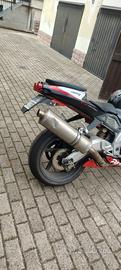 Estetica: La carrozzeria si presenta bene, con i classici adesivi "Aprilia" e "RSV" ben conservati. Il cupolino e il faro anteriore a tre elementi, distintivi di questo modello, sono integri. Si notano i terminali di scarico MIV in aggiunta a quello originale.