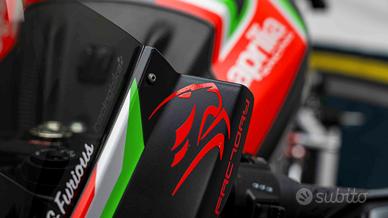 ACCESSORI Kit catena DID 520, catena, corona pignone da 15 denti, Scarico Akrapovic completo con Mappa aprilia ufficiale con DB Killer, unghia monoposto, tamponi paratelaio + carter + ruote, pedena arretrate, Pompa Rcs corsa corta 17, cupolino fumè, grip serbatoio