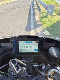 La moto non ha mai fatto pista, usata solo per giri domenicali, perfetta in ogni sua parte. Dopo il tagliando dei 1000, cambio olio fatto di nuovo a 6000km (lo faccio sempre ogni 5k km), da poco effettuato il tagliando dei 10.000 km: oltre a tutti i controlli e cambio olio e filtro, sono state sostituite anche le pastiglie freno anteriore. Dopo ogni uscita lavata con prodotti dedicati e riposta sempre in garage sotto il telo. Monta i seguenti accessori: