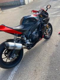 Vendo a malincuore stupenda Aprilia Rsv4 factory del 2009 con 19000 km.... moto perfetta, appena tagliandata... 2 mesi fa sono stati rettificati i corpi farfallati.... non c'è nessun lavoro da fargli... Monta vari accessori in carbonio, convogliatori, parafango anteriore posteriore e fianchetti della carena... mono e forcelle honlins... Cedo con la moto cambio elettronico irc non montato... Stupenda in ogni sua parte, una belva Vendo a 9.500 trattabili dopo visione di comune accordo Monta anche para telaio in pellicola carbonio copri Carter frizione e olio motore