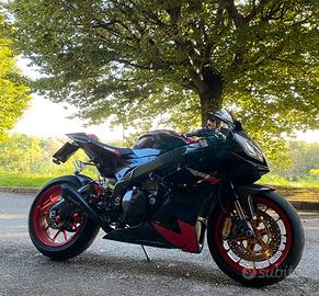 Vendo Aprilia rsv4 tenuta in ottime condizioni. Gomme seminuove, codone sottocodone vasca fianchetti e cupolino in carbonio. Para telaio e copriforcellone in carbonio. Parafango anteriore e posteriore in carbonio. Frecce led fanale posteriore con frecce integrate. Pedane arretrate. Scarico HP corse con mappa dedicata. Leve antirottura con paraleve. Entrambe le selle sono state rifoderate. Cambio elettronico in salita.