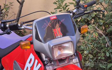 Aprilia RX 125 motore Rotax 123, iscritta Asi, cupolino autografato da Stefano Passeri, funzionante in tutte le sue parti, olio, catena, freni nuovi, batteria nuova, olio e paraoli forcelle nuovi, monta cilindro 223610, viene usata settimanalmente, revisione valida. Disponibile pompa freno anteriore Originale.