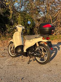 Lo scooter ha come dotazione optional sella biposto lunga,pedaline passeggero originali aprilia e supporto con bauletto.