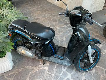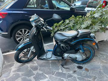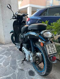 Scarabeo del 2016 con ultima revisione fatta nel 2025. Leggermente graffiate le plastiche e la pedana leggermente rotta ma tutto perfettamente funzionante come il primo giorno. Striche blu catarinfrangenti applicate a mano e facilmente removibili.