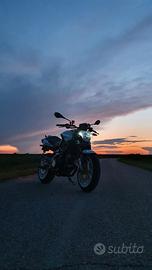 Aprilia Shiver depotenziata per patante A2 color bianco perlato Accessori: - scarico Roadsitalia omologato (fornisco anche l originale) - pompe freno e frizione Brembo del RSV 1000 (fornisco anche le originali) - oblò carter frizione trasparente (fornisco anche l originale) - faro anteriore a led - cupolino Shiver originale non presente in foto - pararadiatore originale - tamponi sui mozzi - doppio disco anteriore Brembo serie oro Motore bicilindrico con 3 mappe, allestita con forcelle Showa e mono Sachs. È stato effettuato tagliando completo a 57000 km con regolazione gioco valvole, cambio tutti i filtri: carburante, aria e olio motore, cambio antigelo e cambio olio freni e frizione. Gomma posterio con 3000 km Kit trasmissione DID serie oro con 1000 km. Categoria naked simile a ktm duke, yamaha mt, kawasaki z.