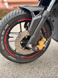 Vendo Aprilia SR 50 anno 2021 con circa 15.000 km. Motore raffreddato ad aria, monta marmitta Giannelli Extra, carburatore 17,5 e rulli Malossi da 5,5 grammi. Il motorino nasce bianco ed è omologato per 2 persone. Carena anteriore sostituita e ora nera, mentre le carene posteriori erano bianche ma sono state verniciate di nero. È presente una piccola saldatura ai lati (visibile in foto, i "serpenti"), da cartavetrare per una rifinitura estetica. Documenti in regola, pronto al passaggio di proprietà.