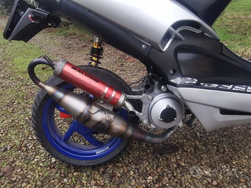 Vendo per inutilizzo scooter Aprilia sr 50 LC anno 1997 (versione netscaper). Lo scooter si presenta in condizioni perfette. Nessun lavoro da eseguire, pronto all'uso. Impianto elettrico perfettamente funzionante compreso di contagiri e temperatura acqua con display stage6. Set di carene nuove marca edge in grigio metalizzato, gomme nuove, impianto frenante con tubi in treccia e dischi braking. Specchietti pieghevoli e accessori in carbon look. Fodera selle nuove rifatte. Blocco motore minarelli con freno posteriore a disco (in origine a tamburo), con elaborazione 70 top tpr 1, albero top, marmitta malossi mhr team curva alta, phbg 21, spugna filtro malossi, collettore malossi tipo originale, pacco lamellare tassinari 8 petali, trasmissione completa tpr (compreso carter ingranaggi), rapporti malossi primari, pompa acqua elettrica motorforce e dissipatore str8. Forcelle anteriori revisionate e mono posteriore nuovo regolabile della YSS. Revisione da effettuare e passaggio di proprietà a carico dell'acquirente. Compreso nel prezzo il suo set di carene originali. Chilometraggio originale, manuale uso e manutenzione. Miscelatore eliminato,ma sono presenti i suoi pezzi. Per altre foto e informazioni contattatemi.
