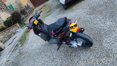 Lo scooter monta un motore 75 e marmitta a espansione, portatarga piccolo e cavalletto laterale