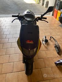 Vendo Aprilia SR Viper 50 cc, modello iconico degli anni '90. Lo scooter viene venduto nelle condizioni in cui si trova, ideale principalmente come FONTE DI PEZZI DI RICAMBIO o per chi desidera cimentarsi in un restauro completo. Caratteristiche e dettagli: • GOMMA POSTERIORE NUOVA: Ho appena sostituito lo pneumatico posteriore, che è nuovo e mai usato (battistrada al 100%). • MOTORE: Lo scooter è fermo da tempo, ma il motore non è bloccato. Sostituendo il carburatore, il mezzo dovrebbe tornare ad accendersi senza problemi. • PEZZI EXTRA INCLUSI: Insieme allo scooter fornisco i componenti che vedete a lato nelle foto: 1.Marmitta a espansione aggiuntiva (modello a serpentina, ideale per elaborazioni dell'epoca). 2.Maniglione posteriore originale color viola con logo Aprilia. 3.Sottoscocca/Plastica protettiva di ricambio. • DOTAZIONE: Presenti chiavi originali con relativo portachiavi. Condizioni estetiche (come da foto): • Le plastiche e le carene sono originali ma presentano segni di usura, graffi e alcune rotture dovute al tempo (in alcuni punti sono fissate con nastro per sicurezza). • La sella presenta degli strappi nel rivestimento e necessita di essere rifoderata. Lo scooter è un'ottima opportunità per chi cerca ricambi difficili da reperire (cerchi, forcella, blocchetto chiavi, impianto frenante) o per chi vuole recuperare la meccanica. Vendo con formula "visto e piaciuto" nello stato attuale. Ritiro: A carico dell’acquirente. Disponibile per ulteriori foto o chiarimenti tramite messaggistica.