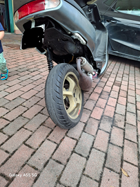 A malincuore vendo Aprilia sr a liquido del '95(con targa nuova quindi necessita di passaggio) per fare posto nel garage per i giochi di mio figlio. Lo scooter è elaborato tutto malossi: gruppo termico in alluminio con pistone monofascia da 47,6, albero motore, variatore correttore di coppia cinghia,rapporti, carburatore 21 dell'orto, malossi trofeo, blocco motore con freno a disco del nitro ecc... tutto quanto montato dei primi anni 2000 quando ero ragazzo. Sostituito da poco pistone, ammortizzatore,pompa dell'acqua e faro anteriore e modificato per lampadina h7 a led dato che l'unico difetto che aveva questo scooter era l'illuminazione della strada. Usato fino a 2 anni fa , prima che nascesse mio figlio ( faceva ancora 120 km/h).... dispongo anche di blocco motore con 50 con marmitta oltre che ad alcuni pezzi di ricambio .