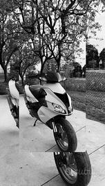 vendo aprilia sr50 motore piaggio prima era neronora bianco come da foto, il motorino in se e perfetto targato quindi passaggio obbligatorio, e un 50cc con variatore polini e scarico cambiato (le revisioni le ha sempre passate cosi) gomma dietro nuova, contachilometri non funziona e da cambiare, tutto il resto e perfetto frecce ecc, si accende a mezzo dente anche da freddo (ho video) fa intorno ai 80/85 vendo per passaggio a moto piu grande ha qualche segno di utilizzo di plastiche ma di MOTORE E PERFETTO
