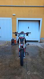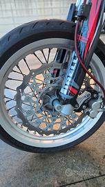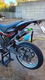 Vendo aprilia sx 125 2t del 2008 con 28300 km, manutenzione regolare, sempre eseguita da un meccanico. Appena fatta rimbiellare, cambiata biella, pistone, ghigliottina valvola rave, testa, cuscinetti di banco. Ha un solo pieno fatto dal rifacimento motore. La moto monta: Pistone wossner Biella NRTeam Valvola rave pneumatica Scarico completo Scalvini Disco da 320mm di HTMracing con spostapinza Pompa anteriore Braking da 16 Tubo anteriore in treccia su misura Specchietti a manubrio Portatarga regolabile Parafango r-Tech V-face con Angel eye Paracolpi Accossato Manubrio Accossato Verranno consegnati il parafango anteriore e la mascherina con faro originali Valuto solo scambio con autovettura Prezzo leggermente trattabile