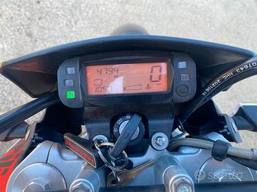 vendo per inutilizzo la moto é ferma da quasi un anno la batteria é stata sostituita di recente ed é perfetta , sono state sostituite le manopole e gli specchietti al manubrio (fornisco anche quelli originali ) inoltre é stato installato il gas rapido , ha eseguito solo il primo tagliando dopo il rodaggio in casa madre dati i pochi chilometri .