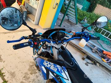 vendo Aprilia 50 Sx monta un gruppo termico MF 70 cc carburatore 21 gas rapido leveraggio in alluminio anno 2011 marmitta con terminale in carbonio batteria nuova grafica personalizzata parecchi pezzi di ricambio originali nel caso uno la volesse rimodificare chi è veramente interessato mi contatti telefonicamente grazie.