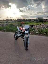 Vendo aprilia sx 50 in perfette condizioni per passaggio a cilindrata superiore. la moto monta: -cilindro originale 50 -carburatore dell'orto 17.5 -kit trasmissione appena cambiato D.I.D. (pignone 14, corona 53, catena) -scarico completo arrow -gas rapido polini -filtro dell'aria nuovo estetica: -v face -parafango acerbis -manopole domino Con la moto cedo anche mascherina originale, parafango originale e tanti altri pezzi. La moto è stata sempre tenuta maniacalmente e in garage. Prezzo leggermente trattabile. Per qualsiasi domanda contattatemi in privato.