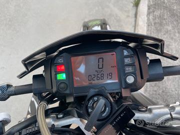Di seguito gli accessori installati (visibili in foto): Paramani Acerbis, manubrio Renthal, impianto di scarico completo Silmotor (dal valore di oltre 1.000 euro), sella Dalla Valle con scalino per passeggero, freccette a LED e lampada fanale anteriore H4 a LED, display a manubrio KOSO con temperatura.