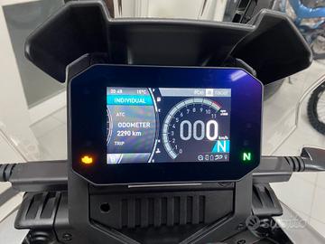 Concessionario vende Aprilia Tuareg 660 del 2023 con solo 2290 km, mai fatto fuoristrada, optional compresi nel prezzo: manopole riscaldate, antifurto, barre protettive nuova ancora da montare come si vede nell'ultima foto