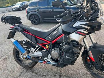 Telaio portaborse laterali e portapacchi posteriore, paracoppa maggiorato, paramani MOTECH, rilevapressione pneumatici , specchietti richiudibili Cupolino magigorato, Leve frizione e freno colorate, portatarga richiudibile, pedane maggiorate Rallye manubrio SRT rialzato