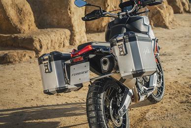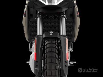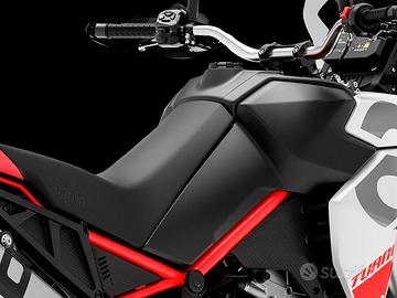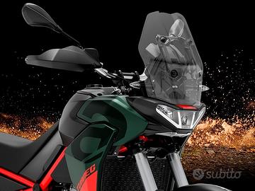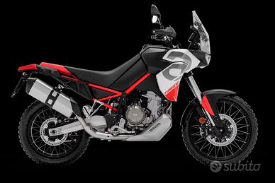 Da solide radici off-road nasce Aprilia Tuareg: leggera, funzionale, prestazionale, intuitiva. La silhouette, incorniciata dal leggendario faro triplo, presenta una sovrastruttura elegante e rastremata. Ogni dettaglio è pensato per trasmettere forza ed energia, dalle linee del design alle livree audaci con telaio rosso e sella bicolore. Colorazioni che evocano la fusione con la natura e sprigionano la potenza degli elementi. llmotore bicilindrico parallelo a 4 tempi, raffreddato a liquido e omologato Euro 5+, eroga 80 CV a 9.250 giri/min, per un equilibrio perfetto tra potenza e controllo su ogni tipo di terreno. I corpi farfallati da 52 mm garantiscono prestazioni a tutti regimi, mentre il generatore a terre rare riduce le inerzie migliorando la reattività e assicurando accelerazioni immediate e decise. L'elettronica di Aprilia Tuareg unisce controllo e prestazioni. Il pacchetto APRC, calibrato per l'asfalto e l'off-road, integra mappe motore aggiornate che esaltano fluidità e prontezza della risposta dell'acceleratore. Ogni parametro è sotto controllo grazie all'intuitivo display TFT da 5'', che regola automaticamente la luminosità all'ambiente. L'integrazione con l'accessorio Aprilia MIA trasforma il display in un vero centro di connettività, con navigazione, chiamate e musica sempre a portata di mano, senza distrazioni dalla guida.È disponibile un'ampia gamma di accessori dedicati a Tuareg che ne migliorano le performance, il comfort e la funzionalità. Valigie laterali, faretti supplementari, sella comfort riscaldata, sensore di pressione per i pneumatici (TPMS), cavalletto centrale, cerchi a raggi heavy-duty, piastra paramotore rinforzata e molti altri accessori, alcuni dei quali derivati dalla versione Rally e pensati per affrontare i percorsi più estremi. Elementi che rendono la moto ancor più personalizzabile elevando il piacere di guida.*prezzo f.c.* Finanziamenti con prima rata a 6 mesi Finanziamenti a tasso 0 Finanziamenti con minirate *SPEDIZIONI IN