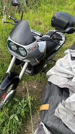 Vendo Aprilia tuareg 350 colorazione nero grigia west km 38000 accensione elettronica e a pedale motore rotax iscritta asi con CRS assicurazione 90 euro . Tagliando appena fatto batteria nuova, bauletto e vari ricambi. Euro 2500. Anno 1989. Si trova ad amalfi. Il lunotto nero davanti rotto sarà sostituito a mie spese. Ho già comprato il ricambio