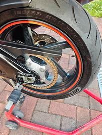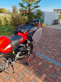 Vendo Aprilia tuono del 2005 con 76520 km. Da poco cambiato i dischi anteriori, rifatto le sospensioni, la trasmissione, gomme nuove,selle rifoderate, ammortizzatore di sterzo regolabile. La moto ha dei telaietti che permettono di caricare le borse laterali e una posteriore. Si viaggia tranquillamente in due per 4/5 giorni.