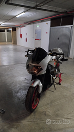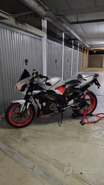 Appena tagliandata. Appena gommata, gomme nuove montate non in foto. Moto per amatori e chi ha esperienza. Aprilia tuono 1000 R Old bicilindrica V2, colore mirror silver, modello raro in queste condizioni e km, modello esente dai problemi statore del modello new. Ottime condizioni colori e adesivi originali, unica in questa configurazione pulita, tutto originale, senza fronzoli o pacchianate. Monta: scarico in carbonio Silmotor, unghia monoposto originale, cupolino fumè, gemme posteriori fumè, specchietti bar end, regolatore di tensione maggiorato, batteria nuova, forcella revisionata, impianto di raffreddamento revisionato con tubi nuovi, kit trasmissione catena corona pignone nuovi con meno di 400 km, nessun problema. Faro anteriore come nuovo raro da trovare in queste condizioni. Una moto da collezione con telaio e ciclistica ancora di riferimento e motore esplosivo. Una bomba Dispongo di scarico originale, sellino passeggero e cupolino originale, gemme posteriori rosse originali, per poter essere fatta storica.