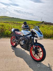 Aprilia tuono 125 del 2004 motore rotax 122 con all'attivo 34.000km moto in ottimo stato come si può vedere dalle foto Ho un altro set di carene originali con adesivi originali, convogliatori perfetti che vanno solo montati e molti altri ricambi tuono introvabili. Moto sempre tagliandata regolarmente e mai nessun problema, affidabilissima. Vendo per passaggio a moto A2 Iscrivibile come moto storica Per ricerca rs 125