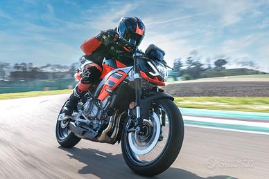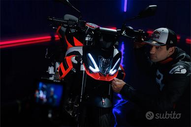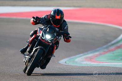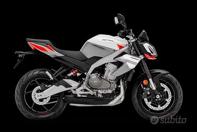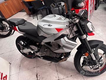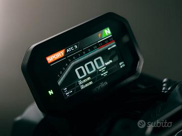 Aprilia Tuono 457 si spoglia della carena per rivelare l'essenza del dinamismo su ruote: look aggressivo e minimale, posizione di guida eretta e il miglior rapporto peso/potenza della categoria. Agile, potente e tecnologica come ogni Aprilia Tuono, grazie al motore bicilindrico, al telaio in alluminio e al sistema elettronico avanzato con Ride by Wire, Traction Control e tre Riding Mode. Il design di Aprilia Tuono 457 si distingue per le sue linee compatte ed essenziali che catturano l'anima sportiva di una vera naked. Il triplo faro anteriore full LED richiama l'iconico stile di Aprilia mentre il piccolo spoiler rende omaggio alla leggendaria Tuono 1000 R. Ogni dettaglio è il risultato di un design funzionale votato alla sportività: l'ottima ergonomia del serbatoio si abbina all'ampio manubrio e alla sella bassa ma rastremata ai lati, per un'esperienza di guida confortevole ma sempre dinamica. Aprilia Tuono 457 è spinta da un moderno motore bicilindrico di 457 cc con funzione portante, un vero gioiello di tecnologia firmato Aprilia, volutamente lasciato scoperto. Il modernissimo propulsore raffreddato a liquido eroga una potenza massima di 35 kW (47,6 CV) a 9.400 giri/minuto: il massimo possibile per una moto guidabile con patente A2. Aprilia Tuono 457 è l'unica del suo segmento a vantare un telaio in alluminio, scelta obbligata per garantire l'eccellenza nel comportamento dinamico. Progettato attraverso avanzate tecnologie di Computer Aided Engineering (CAE) e approfonditi test su strada, contribuisce a ottenere un peso a secco di soli 159 kg, per un rapporto peso/potenza da record. Il reparto sospensioni è di alto livello: il precarico è regolabile sia sulla forcella con steli da 41 mm che sull'ammortizzatore posteriore che lavora sul forcellone asimmetrico in acciaio.*prezzo f.c.* *SPEDIZIONI IN TUTTA ITALIA* Finanziamenti con prima rata a 6 mesi Finanziamenti a tasso 0 Finanziamenti con minirata