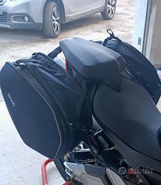 Accessori: piattaforma Aprilia MIA, griglia radiatore Evotech Performance, presa USB originale Aprilia, protezioni serbatoio Labelbike, specchi bar end omologati Chaft, borse laterali Shad e48+telaietti RemoveX Givi, leve regolabili, doppie cover scarico (originali + originali verniciate a polvere nero opaco come da foto), portatarga, filtro sprint filter p08, flangia ed altro.
